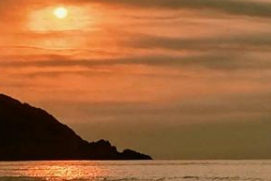 只见海天交际处,先是一小团暗红的光,像谁不小心打翻了颜料。接着,那光迅速膨胀、燃烧,将西方的云彩染成了金橙色。紧接着,一个半圆形的金边出现在海平线上,那一刻,仿佛整个宇宙都屏住了呼吸。